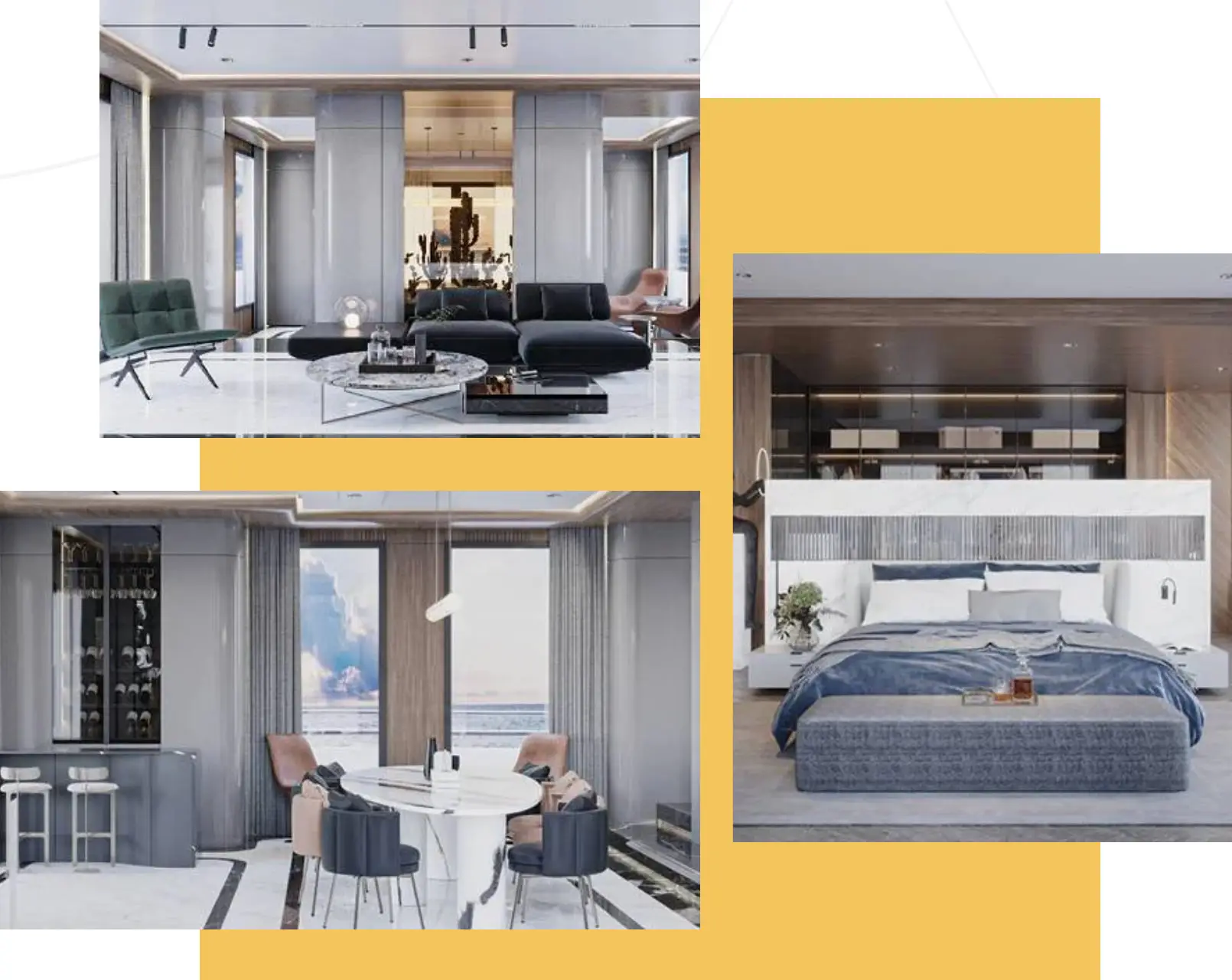 Проект Хасана Сефа Софуоглу — Auramaris — представляет собой концептуальный интерьер роскошной яхты, на который автора вдохновили глубины океана и образы морских божеств. Интерьер объединяет брутальность стихий, элегантность божественных форм и изысканность природных текстур, превращая пространство в эмоциональное путешествие. Каждый элемент продуман до мелочей — от линий до материалов и освещения, всё взаимодействует в едином дизайнерском нарративе.